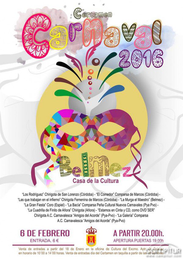 Un año más, Belmez acoge la celebración de su Certamen de Carnaval donde se congregan numerosas agrupaciones carnavalescas para deleite de los espectadores.