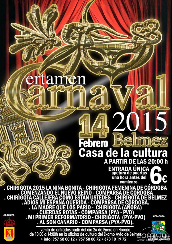 Belmez acoge un año más la celebración, en esta ocasión del XXI Certamen de Agrupaciones Carnavalescas, que en esta edición contará con la participación nada más y nada menos que de 8 agrupaciones.
